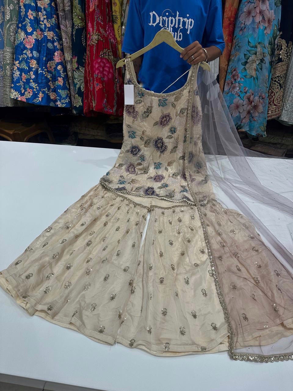 Cream Floral Intricate Sequin, Pearl & Bead Gharara